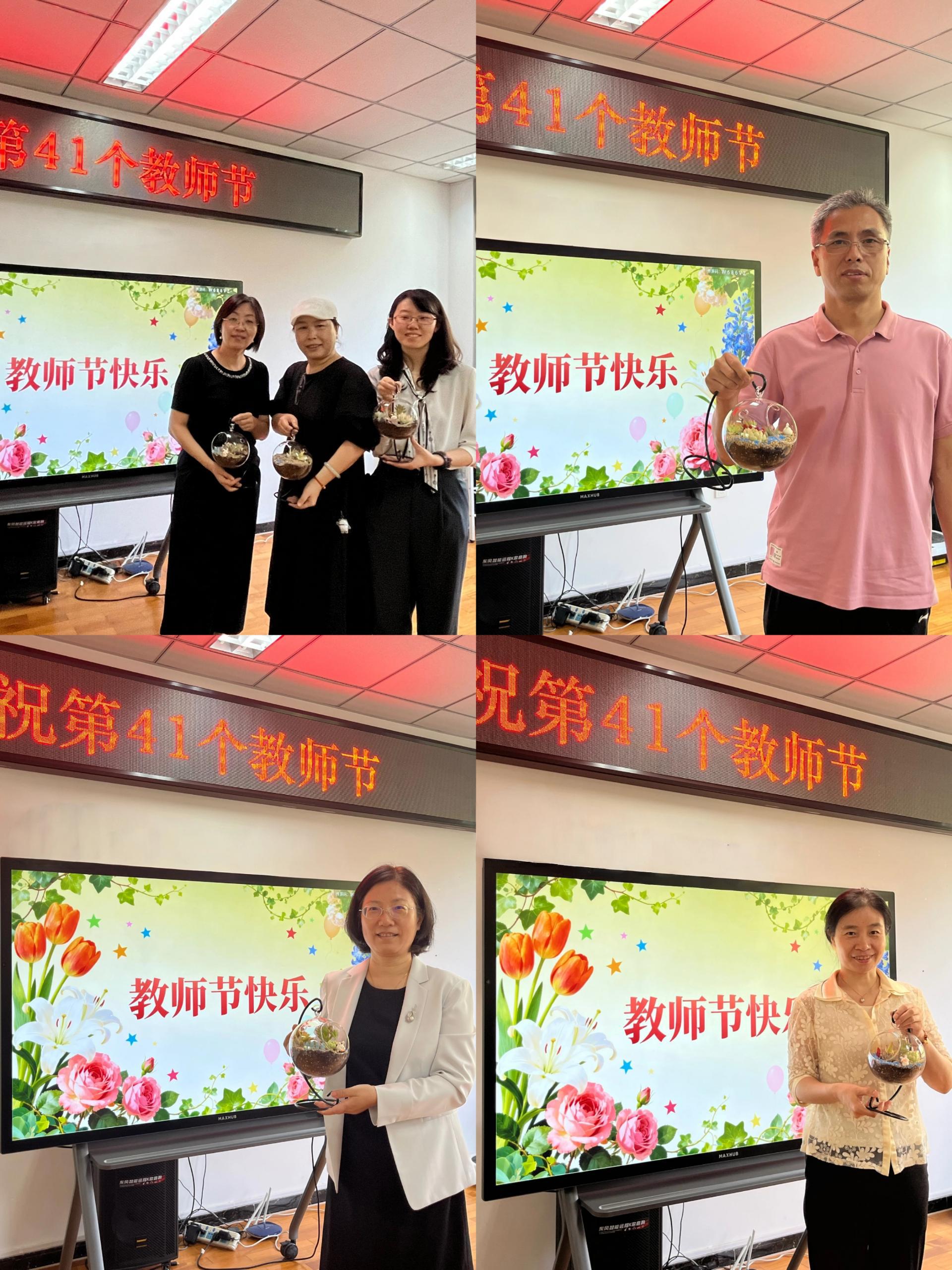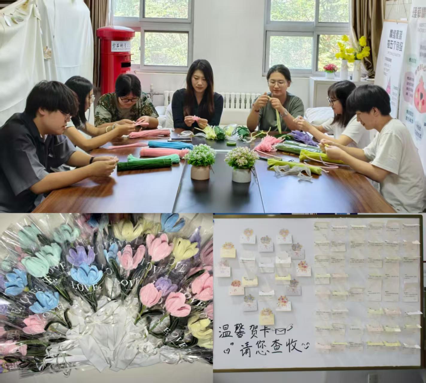 学院学子亲手制作手工花,祝福墙上贴满了温馨贺卡。教师节当天,老师们惊喜地领取DIY花束和专属贺卡,在花香与祝福中感受节日的温暖与喜悦。
