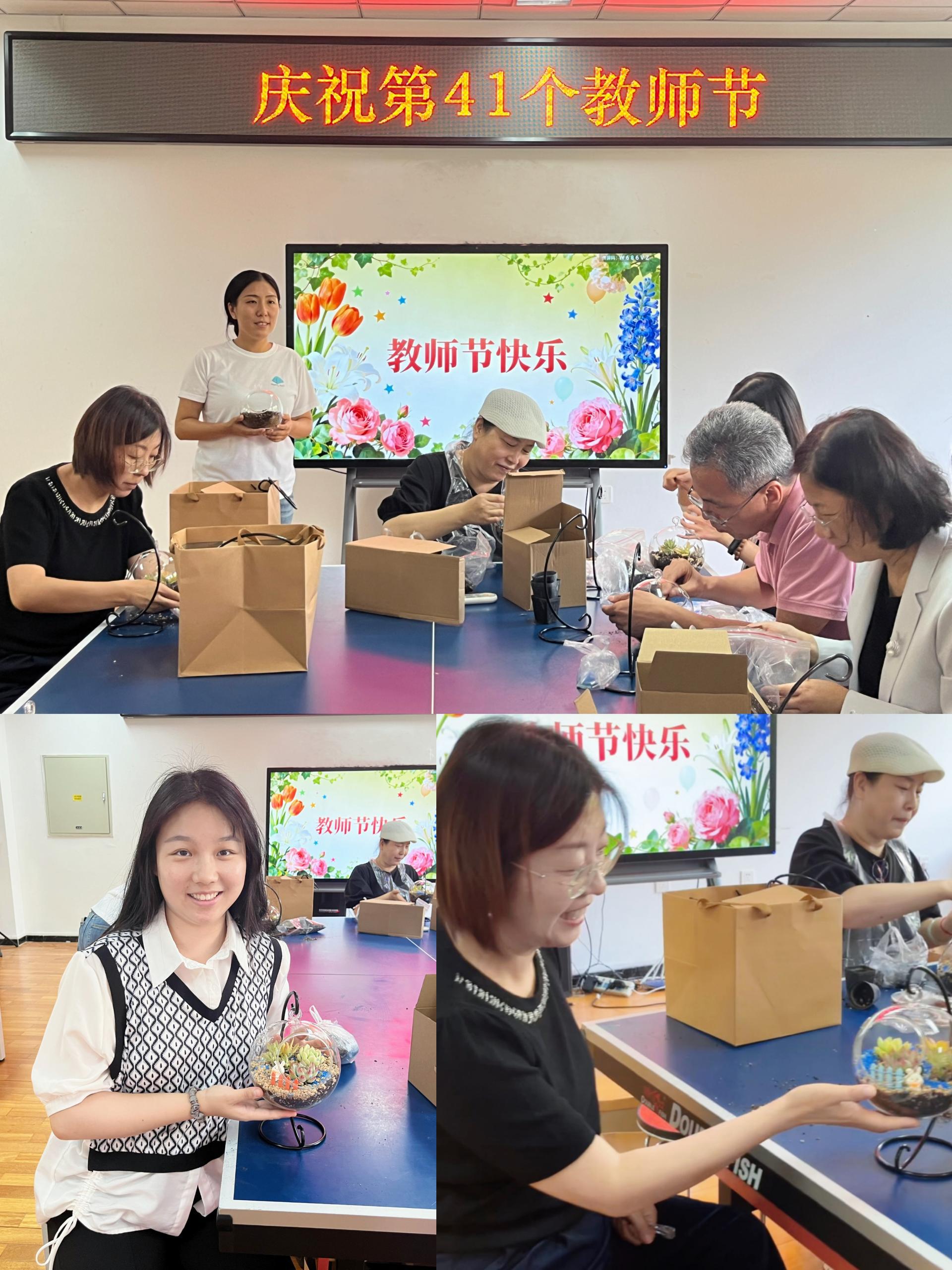 多肉植物DIY环节,老师们变身巧手花匠,尽情释放自己的想象力,打造各具特色的“纯手工盆景”。短短半小时,老师们的巧手慧心便随着诸多精彩作品一一呈现。